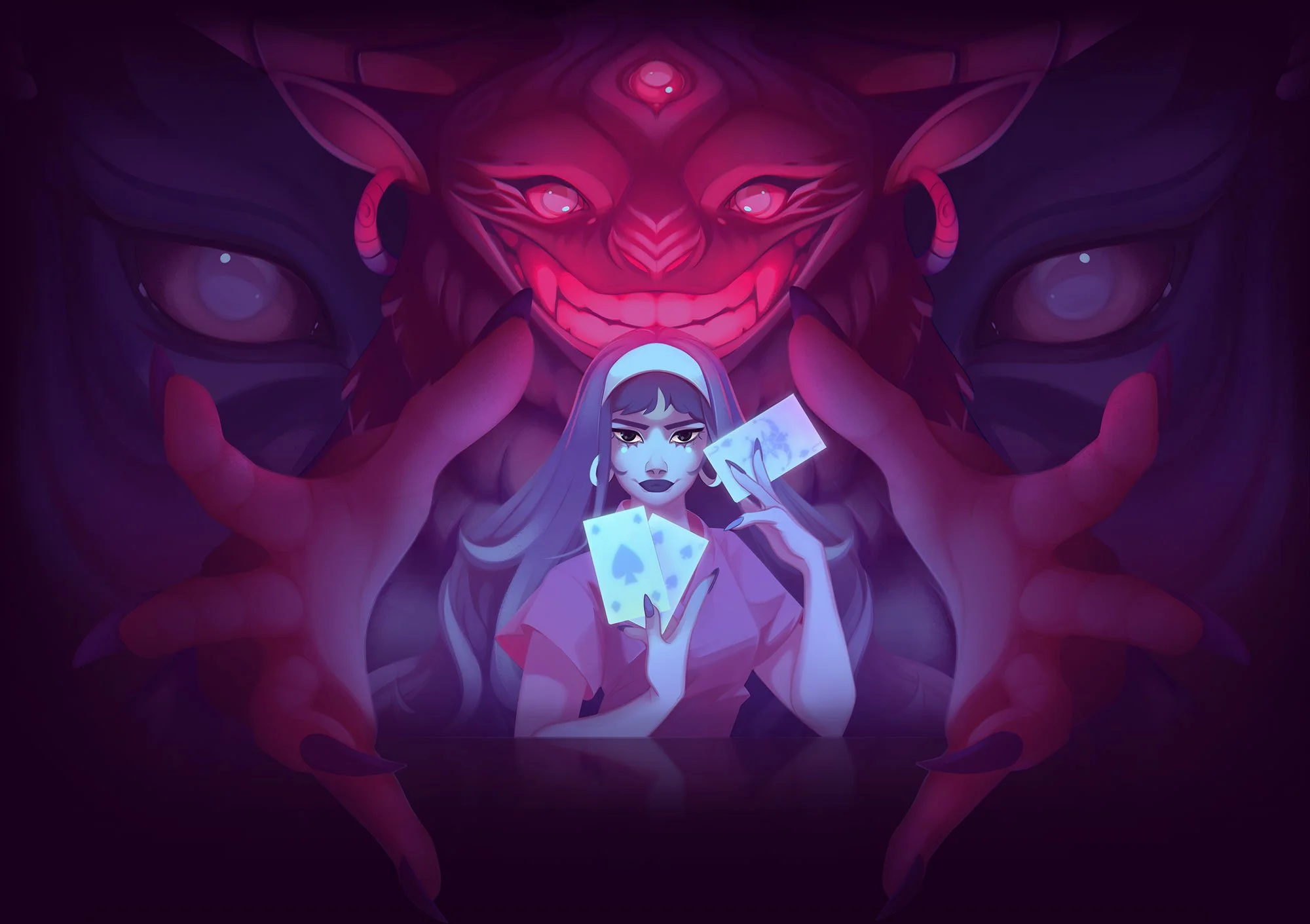 Wield arcane spells and razor-sharp strategy as you sit at the tables of infernal card lords, where every hand could mean salvation or doom.